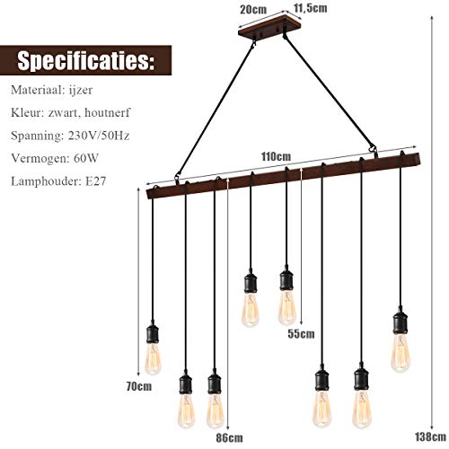 Specificaties: COSTWAY Pendellamp, 8-licht hanglamp houten geschilderde balk lineaire eiland kroonluchter met verstelbare hoogte…