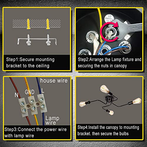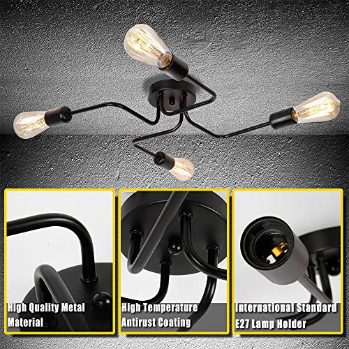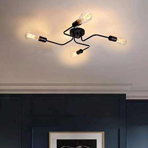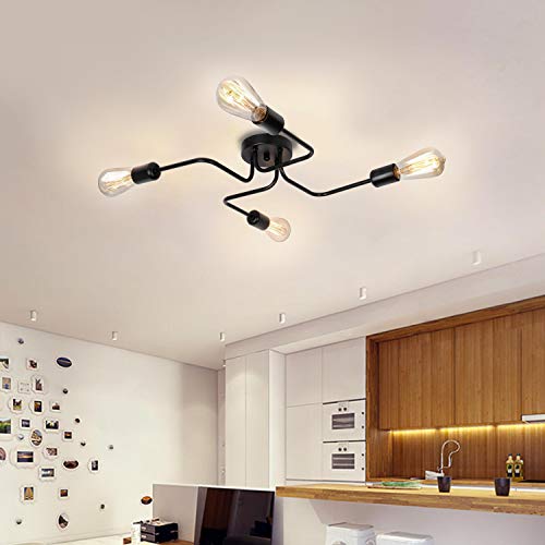 Specificaties: ENCOFT Plafondlamp Vintage plafondlamp 4 lampen Industriële E27 kroonluchter retro lamphouder metaal eetkamer kamer…