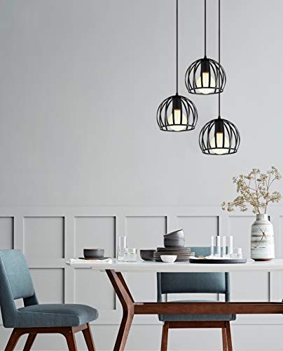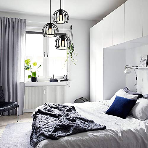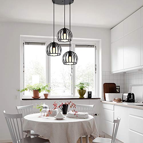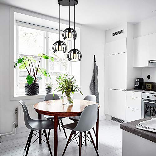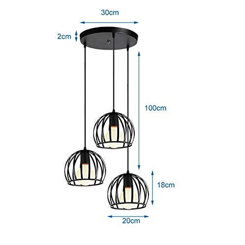 Specificaties: iDEGU 3 hanglampen, vintage plafondlamp, kroonluchter, industriële kooi, lampenkap van metaal, lamp voor woonkamer…