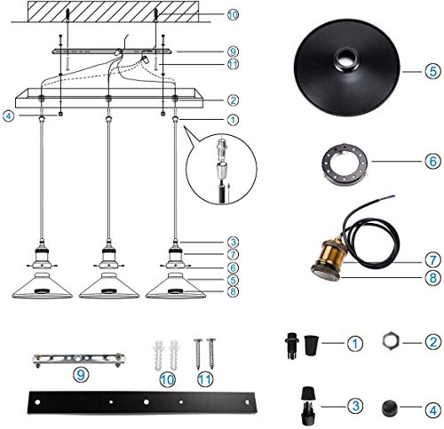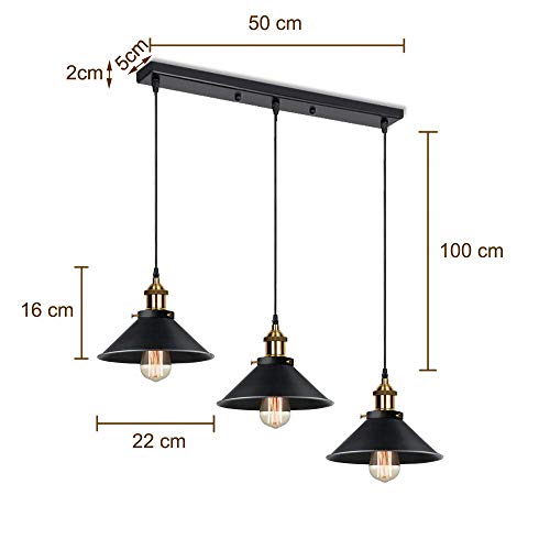 Specificaties: iDEGU Hanglamp met 3 lampen, vintage industriële metalen hanglamp in Edison-stijl, fitting E27, plafondlamp voor keuken…