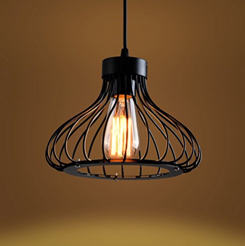 Specificaties: Industriële Retro Kooi Plafond Hanglamp, Tinten Metalen Mand Lamp, Vintage Rustieke Zwarte Draad Kooi Bewaker Opknoping…