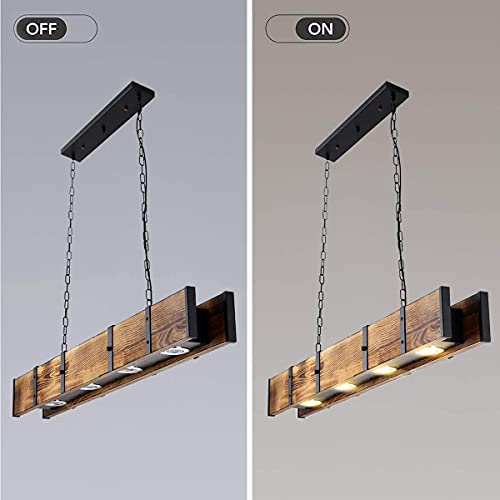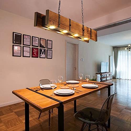 [Kwaliteitsverlichting] – Met een LED-lichtbron zendt de lamp een warm, helder licht dat stijlvol de kamer verlicht; Lamp lichaamsgrootte: 100cm * 8cm * 9,5 cm; 150 cm Hoogte flexibele aanpassing: indien nodig kan de houten eetkamerlampje worden ingesteld op een maximale hoogte van 150 cm instelbaar, dus het kan worden gebruikt voor decoratieve arrangementen van elke hoogte ..