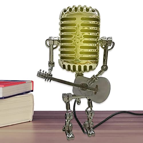Vintage Lamp | Retro industriële steampunk bureaulamp met gitaar,Steampunk coole cadeaus voor dvd-liefhebbers, vrouwen…