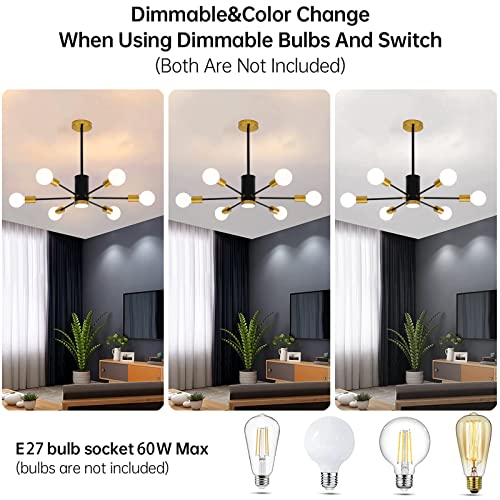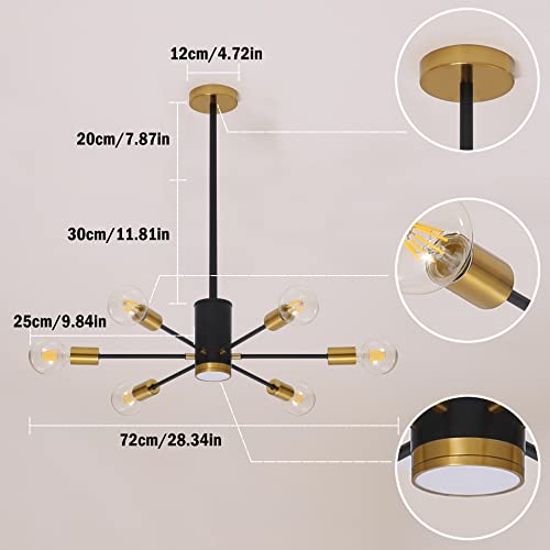 Specificaties: Industriële plafondlamp, 72 cm gesmeed sputnik moleculair licht met 6 lampen voor slaapkamer, hal, E27-gloeilampen niet…