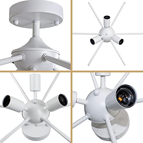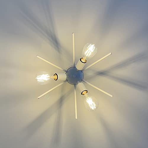 JHLBYL Wit Plafondlamp, E27 Lamp Vintage Industriële Plafondlamp, 3-Lampen Moderne Metaal LED Spoetnik Kroonluchter voor…
