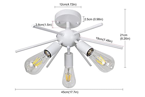 Specificaties: JHLBYL Wit Plafondlamp, E27 Lamp Vintage Industriële Plafondlamp, 3-Lampen Moderne Metaal LED Spoetnik Kroonluchter voor…