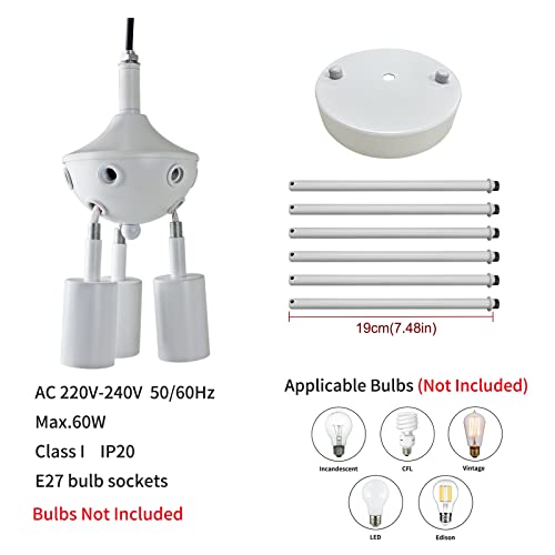 💡 【zonder lampen】- LED/CFL/Edison-lamp/gloeilamp is beschikbaar, E27 Bulb Sockets, Max 60W per lamp, AC 220V-240V, 50/60Hz. Deze witte kroonluchter is dimbaar bij het gebruik van dimbare bollen en een compatibele dimmerschakelaar (niet inbegrepen);