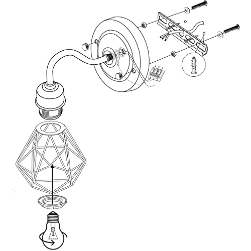 Plaats de eerste recensie voor “iDEGU 2 stuks industriële wandlamp, vintage lamp van metaal, design, kooi, zwart, E27, wandlamp voor binnen, voor…”