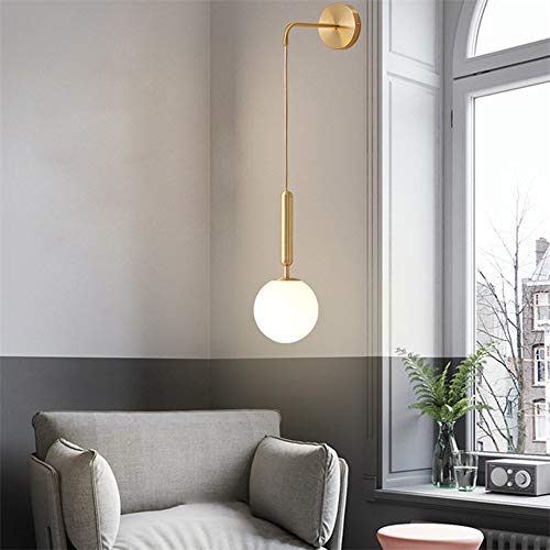 MZStech Vintage Industriële Wandlamp Sconces, 15 cm Wit Glazen Bol & Gold Metal Drop Wall Lichtpunt…