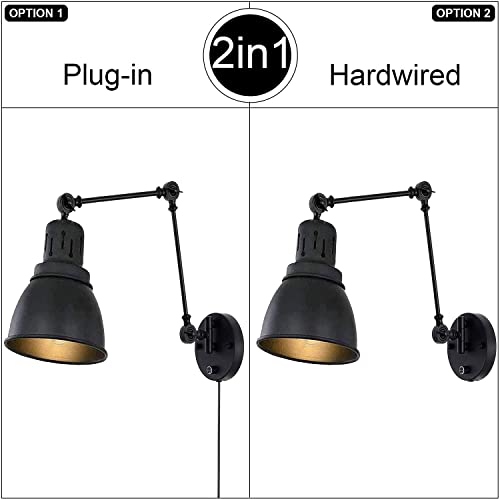 【2-in-1 installatie-ontwerp】Binnenwandlamp met stekker, kan direct in het stopcontact worden gestoken zonder installatie door een elektricien, als er geen stopcontact is of een complete industriële stijl nodig is, kunt u direct een bedrade installatie kiezen