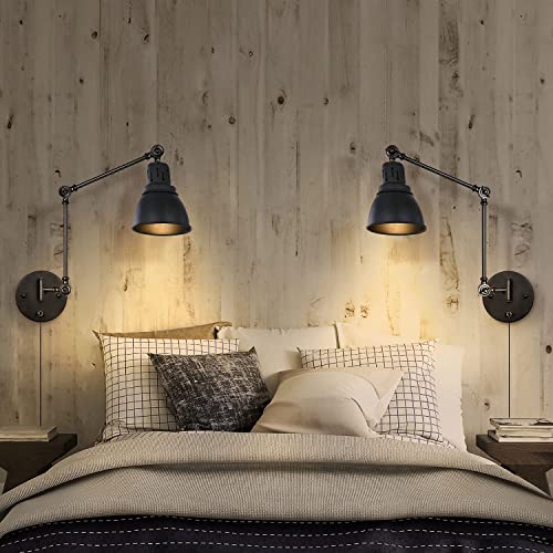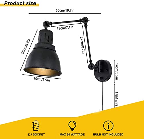 BoBoPai Retro Wandlamp Met Schakelaar En Stekker, E27 Industriële Stijl Verstelbare Wandlamp, Vintage Zwart Draaibaar…