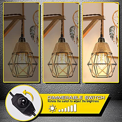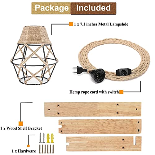 [Maat en materiaal]Metalen lampenkap Maat: 24*18cm; Lengte van henneptouwkoord: 2,5 m (8,21 ft); Ingangsspanning: 220V-240V; Lamphouder: E27; Type stekker: Europese stekker; Lichtregeling: draaiknopdimmerschakelaar (helderheid instelbaar); Materiaal voor wandmontage: hout en metaal en 100% henneptouw, uitstekende afwerking, hoge prestaties, geen roest. Stabiele en robuuste metalen beugel.