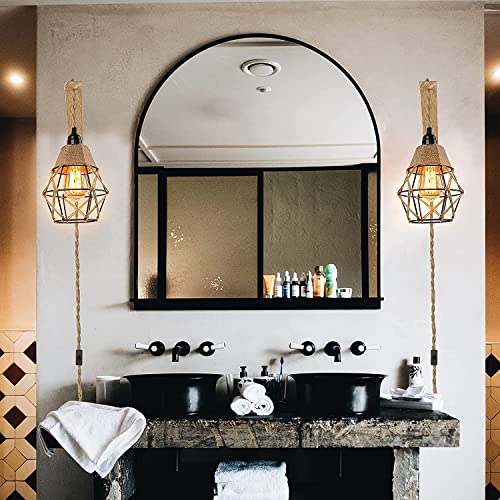 Vintage wandlamp binnen dimbare henneptouw wandlamp met schakelsnoer en stekker E27 zwarte industriële retro lamp…