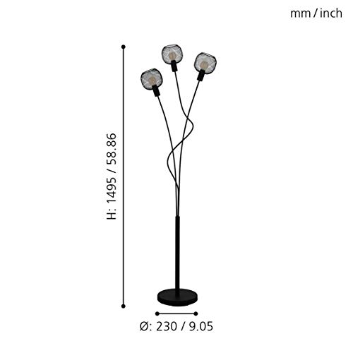 Specificaties: Eglo Staande lamp Wrington 1, 3-lamps, vintage, industrieel, retro, staande lamp van staal, woonkamerlamp in zwart, lamp…