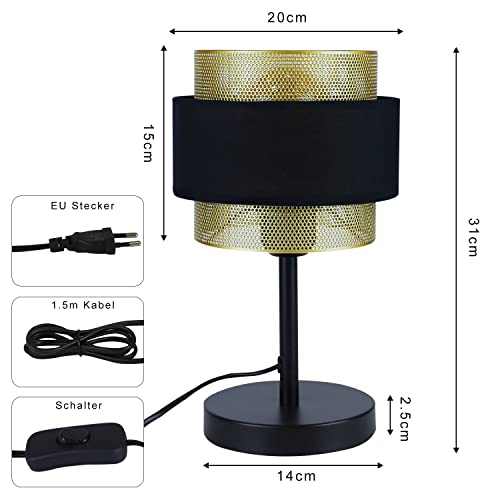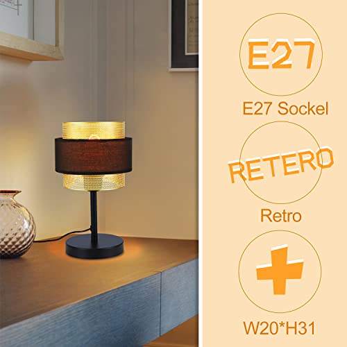 Homefire Tafellamp Retro Bedside Lamp Zwart – Vintage Tafellamp E27 voor Woonkamer Slaapkamer Goud Design Metalen…