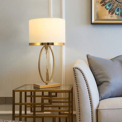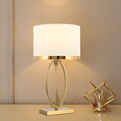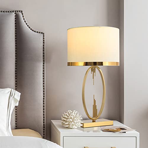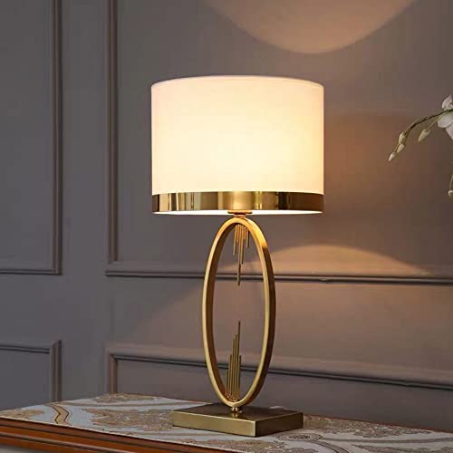 Mengjay tafellamp, tafellamp vintage, industriële, retro, nachtkastje staal en textiel in wit en koper, lamp met…